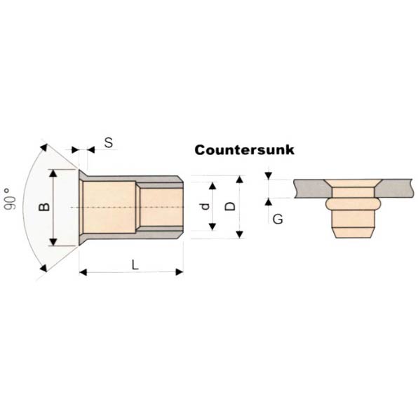 Flathead Blind Nuts / Rivnuts provide the most bearing surface for higher torque applications. The larger flange extends above the material in which it is installed and provides a built-in specer. Choose flathead Blind Nuts when high pushout values are required.